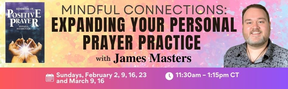 Join James Masters for an enriching, hands-on exploration of the practices in Hypatia Hasbrouck's Handbook of Positive Prayer, providing a framework for creating a meaningful, personal prayer life. We’ll cover the fundamentals of affirmative prayer, from visualization to the practical use of denials and affirmations, discovering how these tools align with the metaphysical principles of thought and action. Students will engage in guided exercises, practice crafting their own prayers, and participate in reflective activities like prayer journaling, creating prayer letters, and more. Designed for both newcomers and seasoned seekers, this course aims to empower participants to cultivate a deeper, more conscious prayer practice that fosters inner peace and spiritual growth.